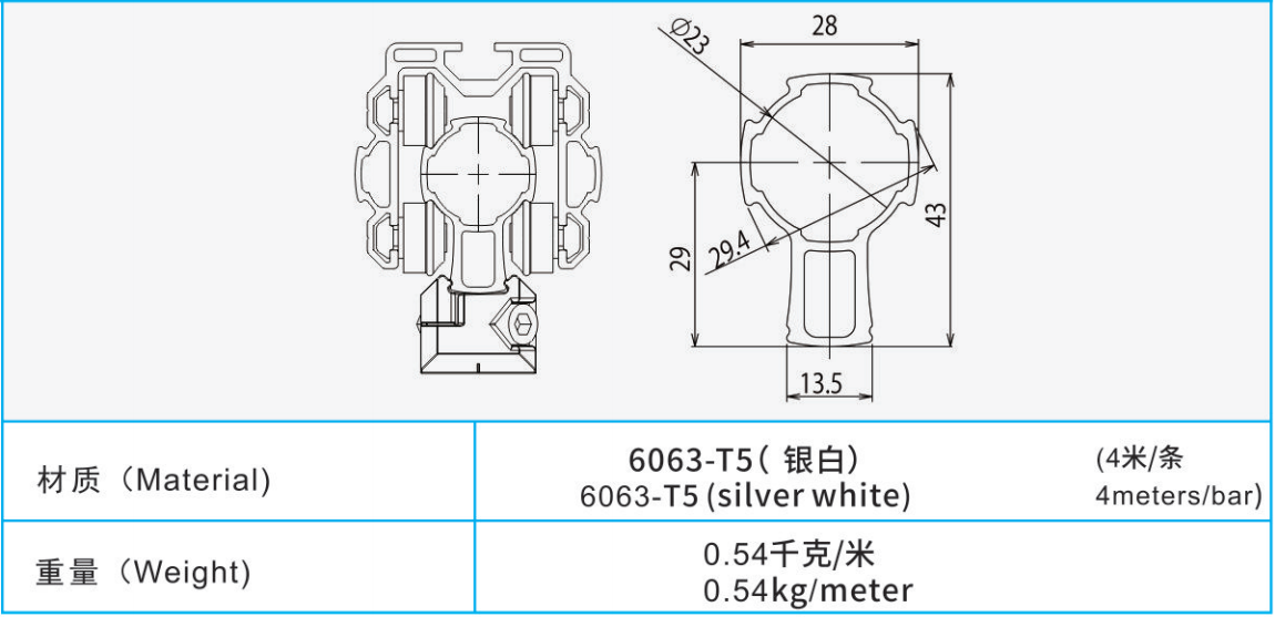 重量:0.54千克/米