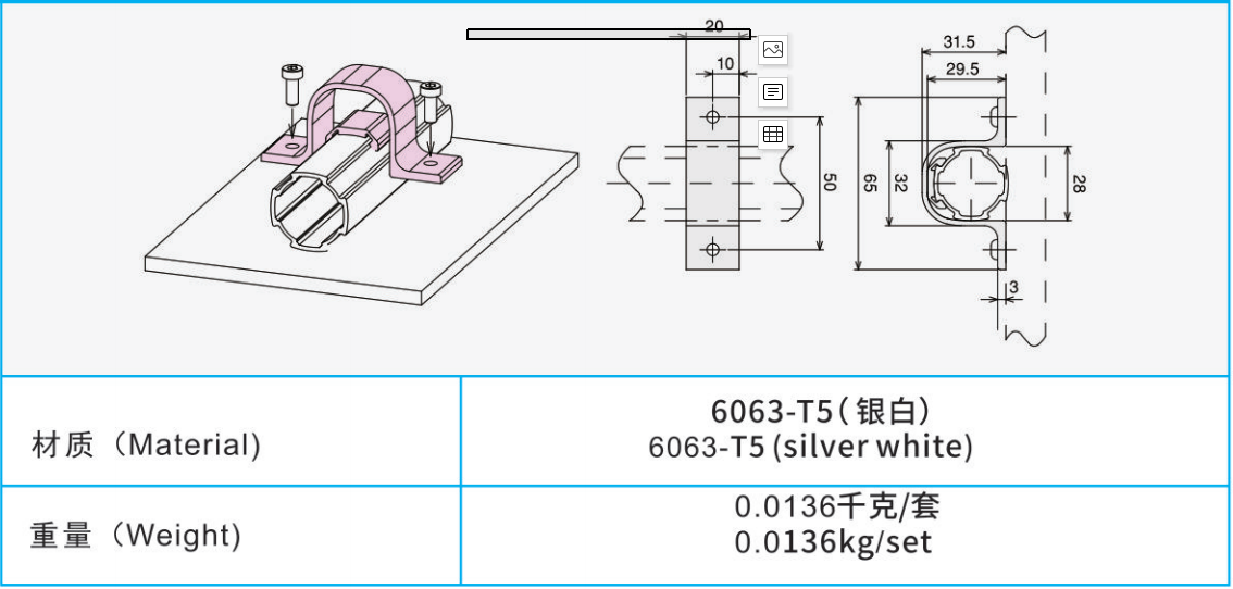 材質(zhì):6063-T5(銀白)