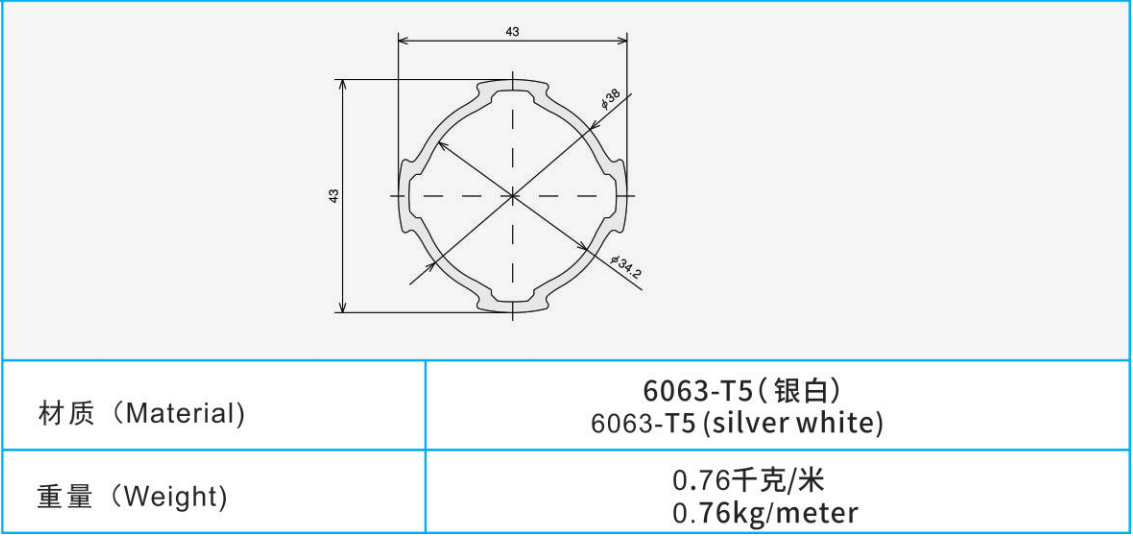 材質(zhì):6063-T5(銀白)