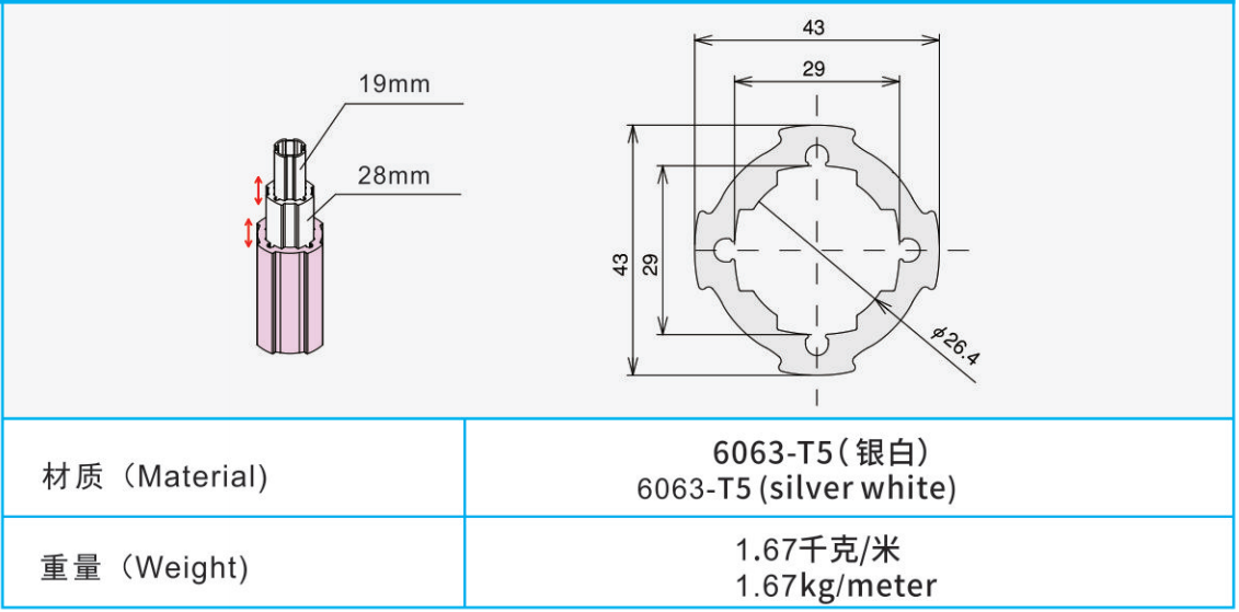材質(zhì):6063-T5(銀白)